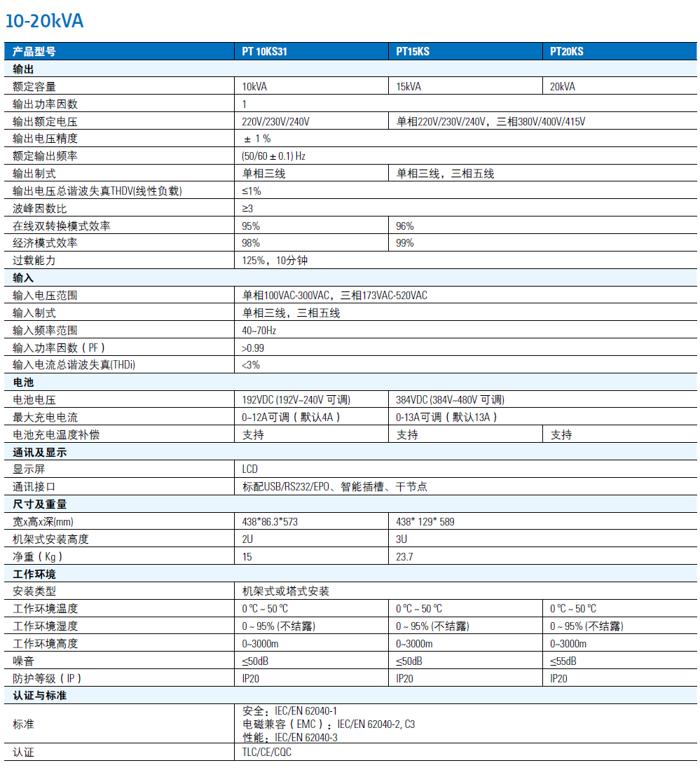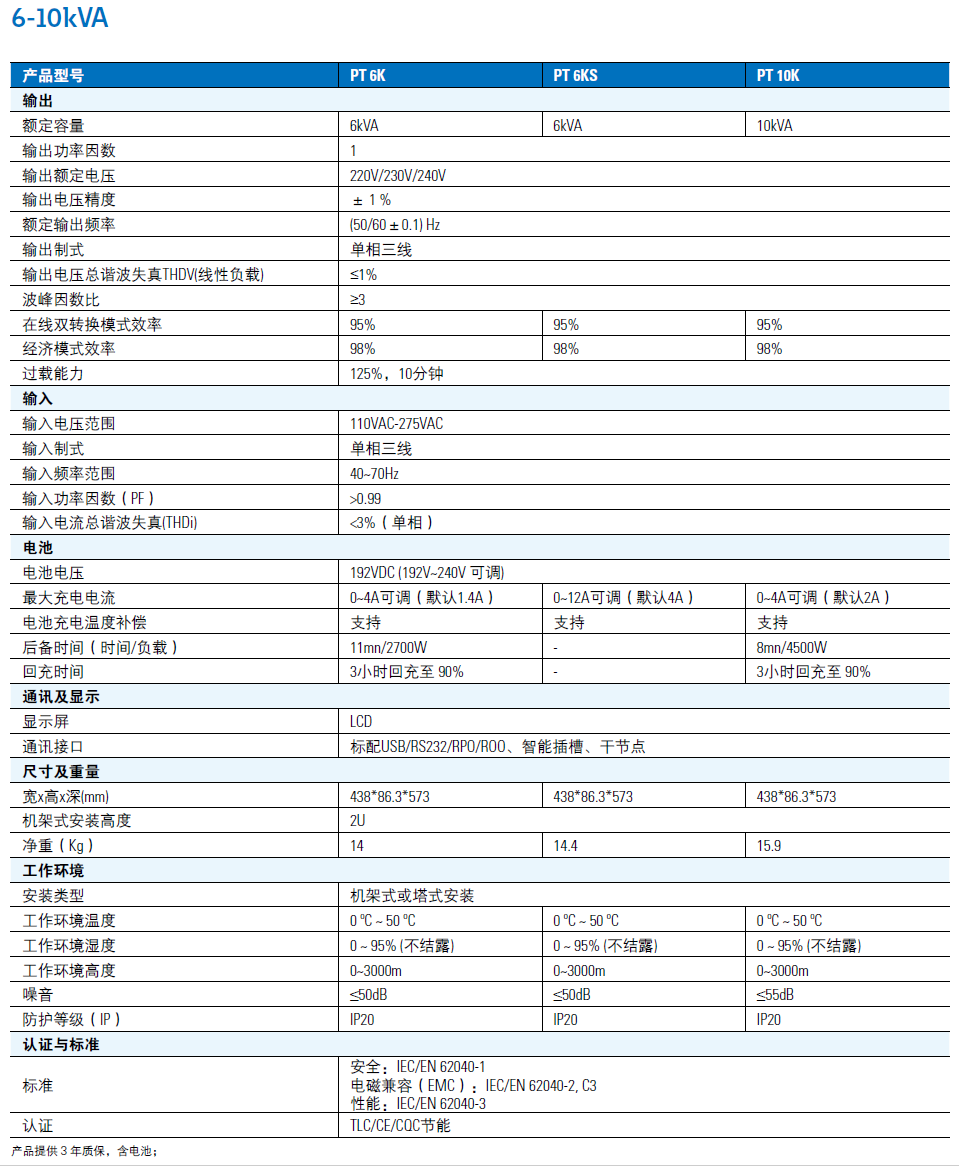 更高的效率,更小的體積。全系列輸出功率因數(shù)為1,10kVA雙轉(zhuǎn)換模式效率高達(dá)95%,機(jī)架式安裝時(shí)高度2U,深度小于600mm。